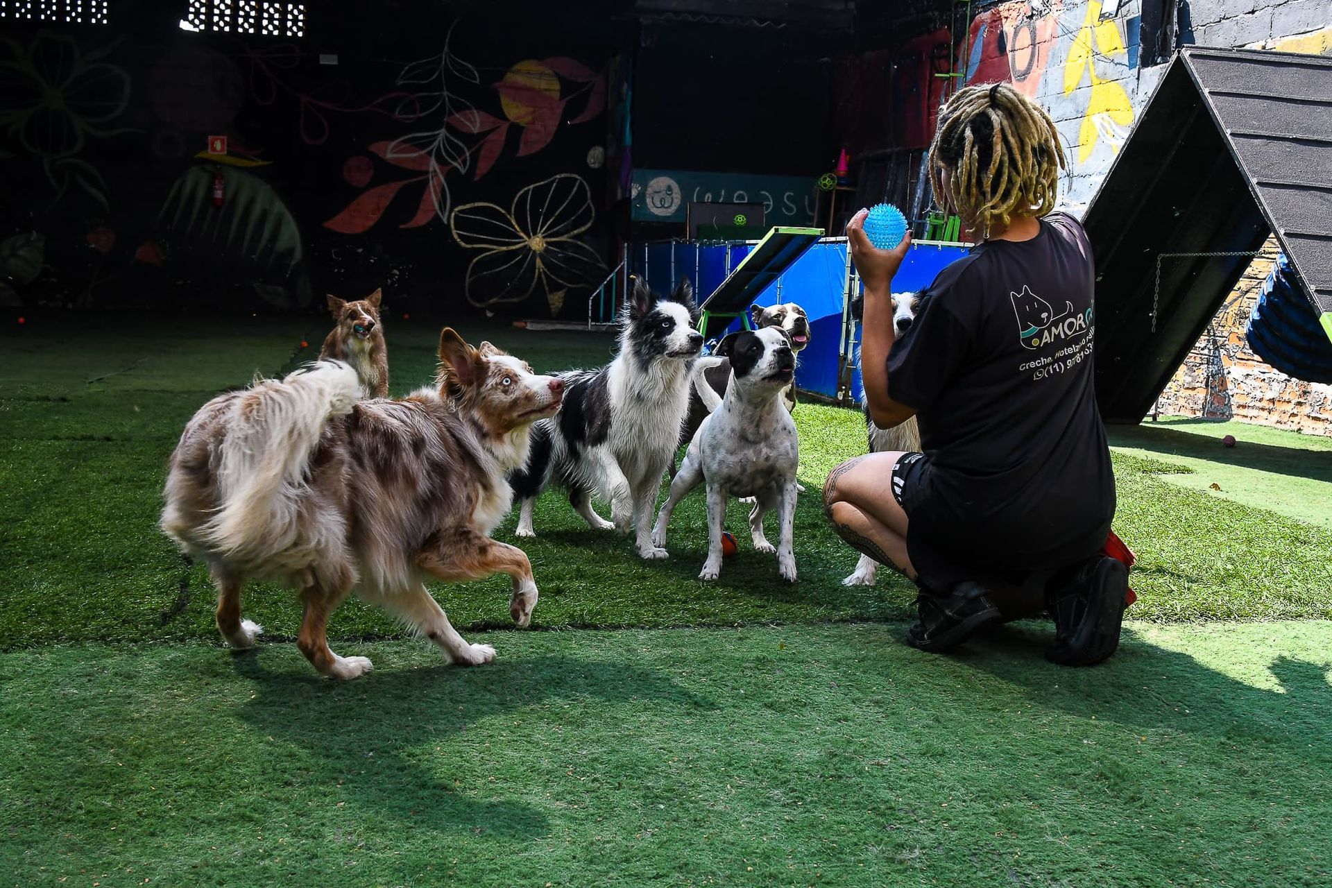 Na AmorCão, acreditamos que uma rotina equilibrada é essencial para o bem-estar dos cães. Por isso, planejamos cada atividade para que eles gastem energia, aprendam e se divirtam de forma saudável. Piscina, passeios, jogos, treinos educativos e socialização fazem parte do dia a dia, sempre com supervisão e carinho. Nosso objetivo é proporcionar experiências que estimulem corpo e mente, tornando cada momento uma oportunidade de conexão, disciplina e alegria.